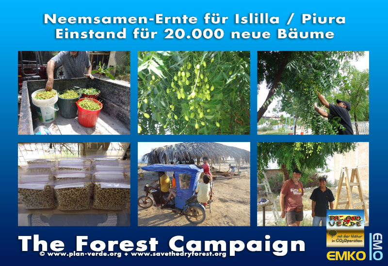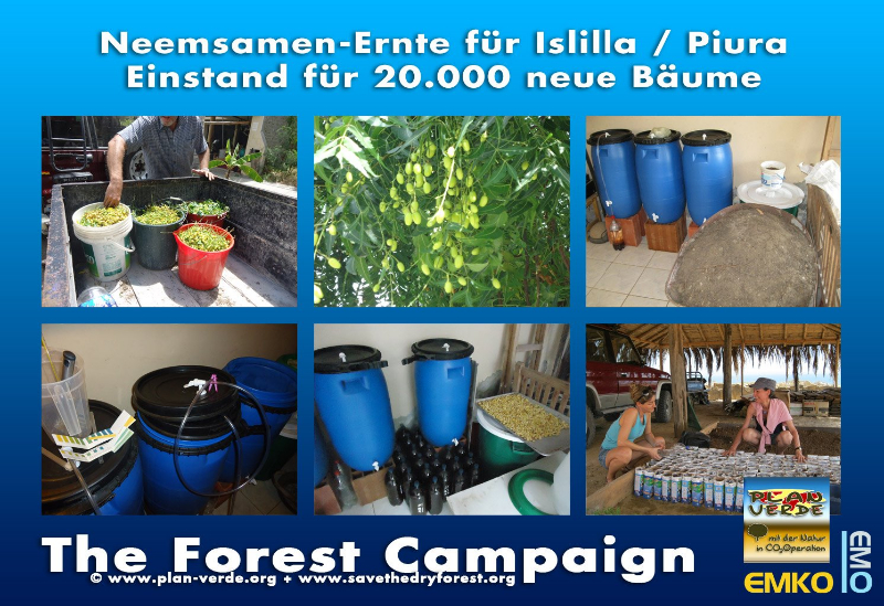 Dem Tipp und Rat folgend von einer sehr netten GIZ – Mitarbeiterin für Katastrophenschutz haben wir vor 3 Tagen 250 Neembäume – geschützt auf privaten Grund – in die Nähe einer Fischer-Gemeinde gepflanzt. Der „Einstand“ an Samen für dieses Gebiet und die nächsten Jahre. Dieses Dorf ist ein Beispiel für Kontraste, die nicht krasser sein können. Es liegt am Pazifik, ist komplett trocken, kein Strauch oder anderes an Pflanzen, hat kein fließendes Wasser… aber Strom für den Schiffsbau. Das Holz kommt aus dem Amazonas! Die Menschen leben in katastrophalen Zuständen und bauen Schiffe für die Fischerei. Eine Beschreibungen der hygienischen Zustände und spielenden Kindern im Müll erspare ich uns allen. Die Bäume werden dort betreut und ev. schon ab dem nächsten Jahr können von dort aus die Samen verteilt werden zur weiteren Verbreitung.